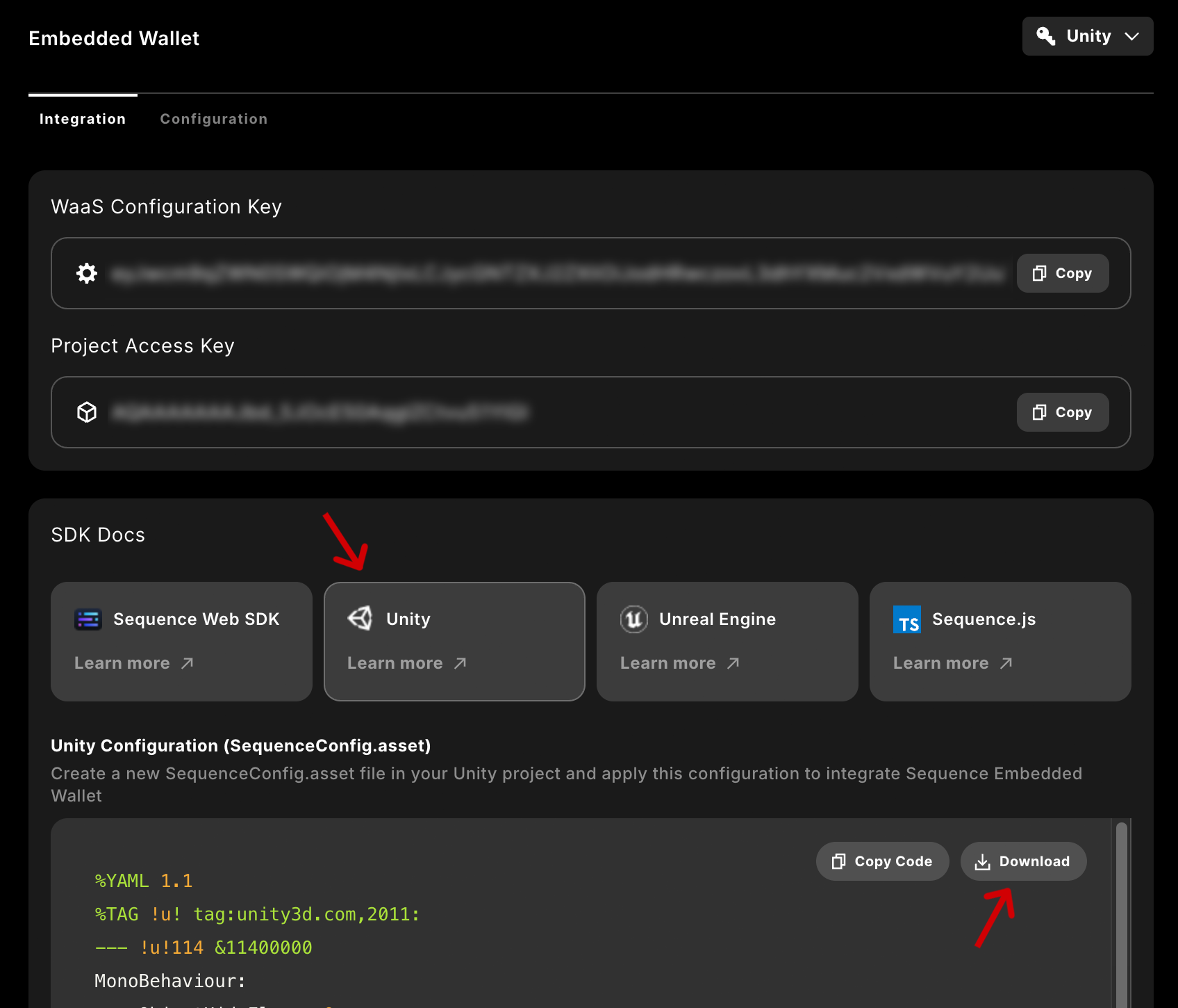Sign in and create a project on Sequence Builder.Download your config file from Builder as shown below.